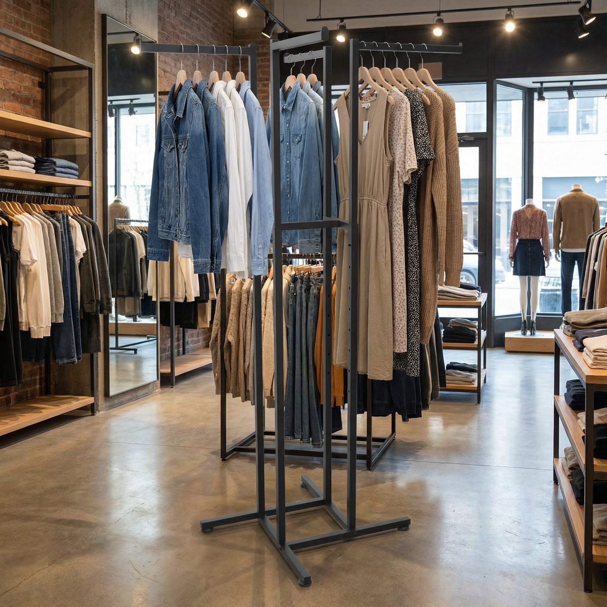 Dieser stabile Kreuzständer, der Marke Aigentlich, überzeugt mit seinem schwarzen matten Finish. Er ist hergestellt aus robustem Metall und kommt mit vier geraden Armen aus stabilem Stahlrohr. Auf diesem setzen Sie Ihre Modeartikel, Accessoires und sonstige Verkaufsartikel effektiv in Szene! Jeder Arm des Kreuzständers hat eine Länge von ca. 40 cm und kann variabel in der Höhe verstellt werden. Er zeichnet sich durch seine einfache und schnelle Montage, sowie seine stabile Basis, aus.